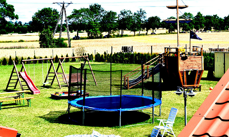 Nasze domy drewniane to komfortowe APARTAMENTY 4-osobowe z tarasem, które zapraszają w szczególności na niezapomniane wakacje rodzinne. Nasz obiekt jest ogrodzony , posiada miejsca parkingowe, boisko do gry w siatkówkę, plac zabaw dla dzieci( statek piracki, zjeżdżalnie, trampolina piaskownica,huśtawki). Dla gości oferujemy wypożyczalnię rowerów!!